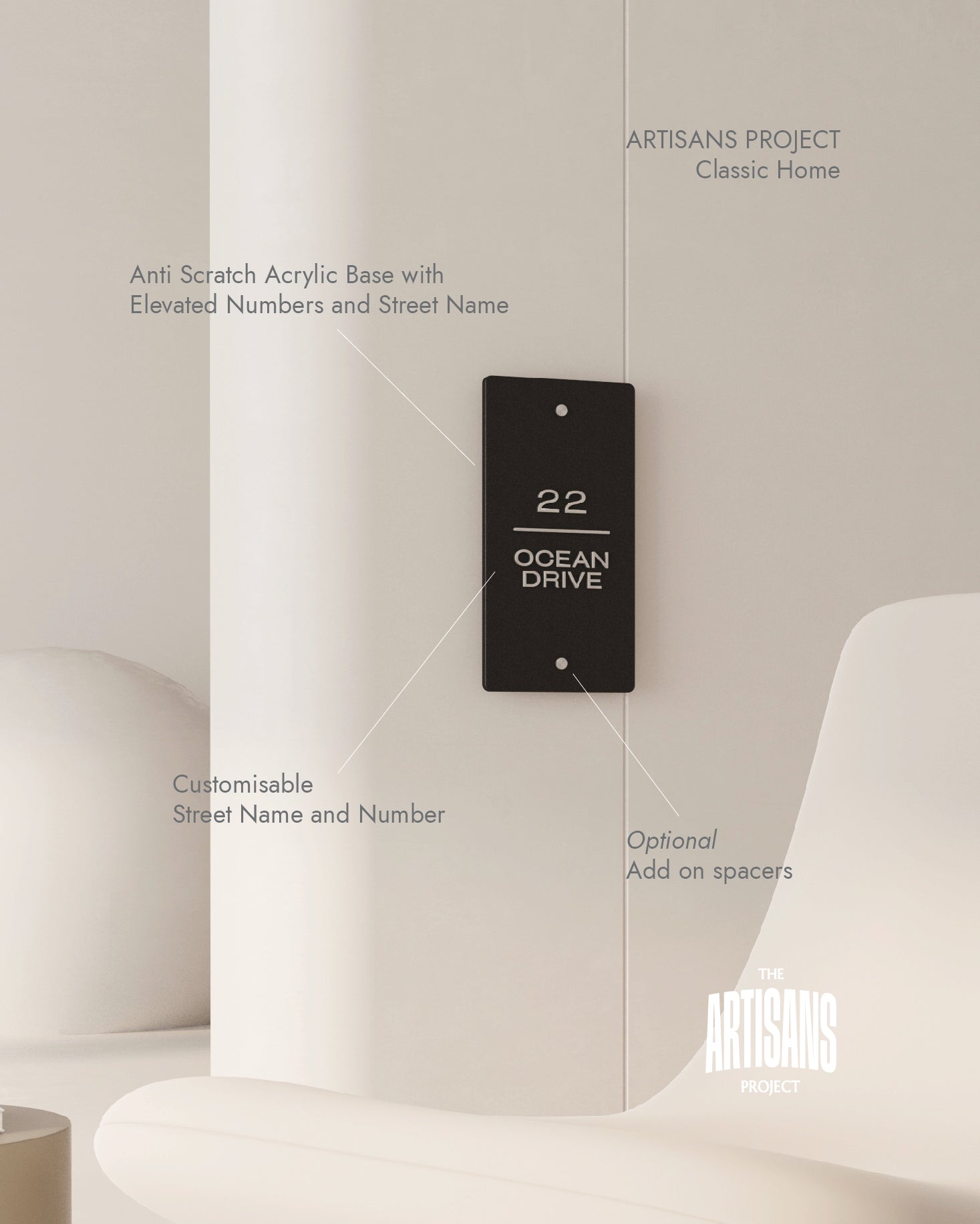 Crafted with precision and designed to captivate. This sign is made with anti-scratch Matte Acrylic with a bold design - making this sign a statement piece right at your door. Light-weight yet sturdy, this sign can be hanged or pasted.