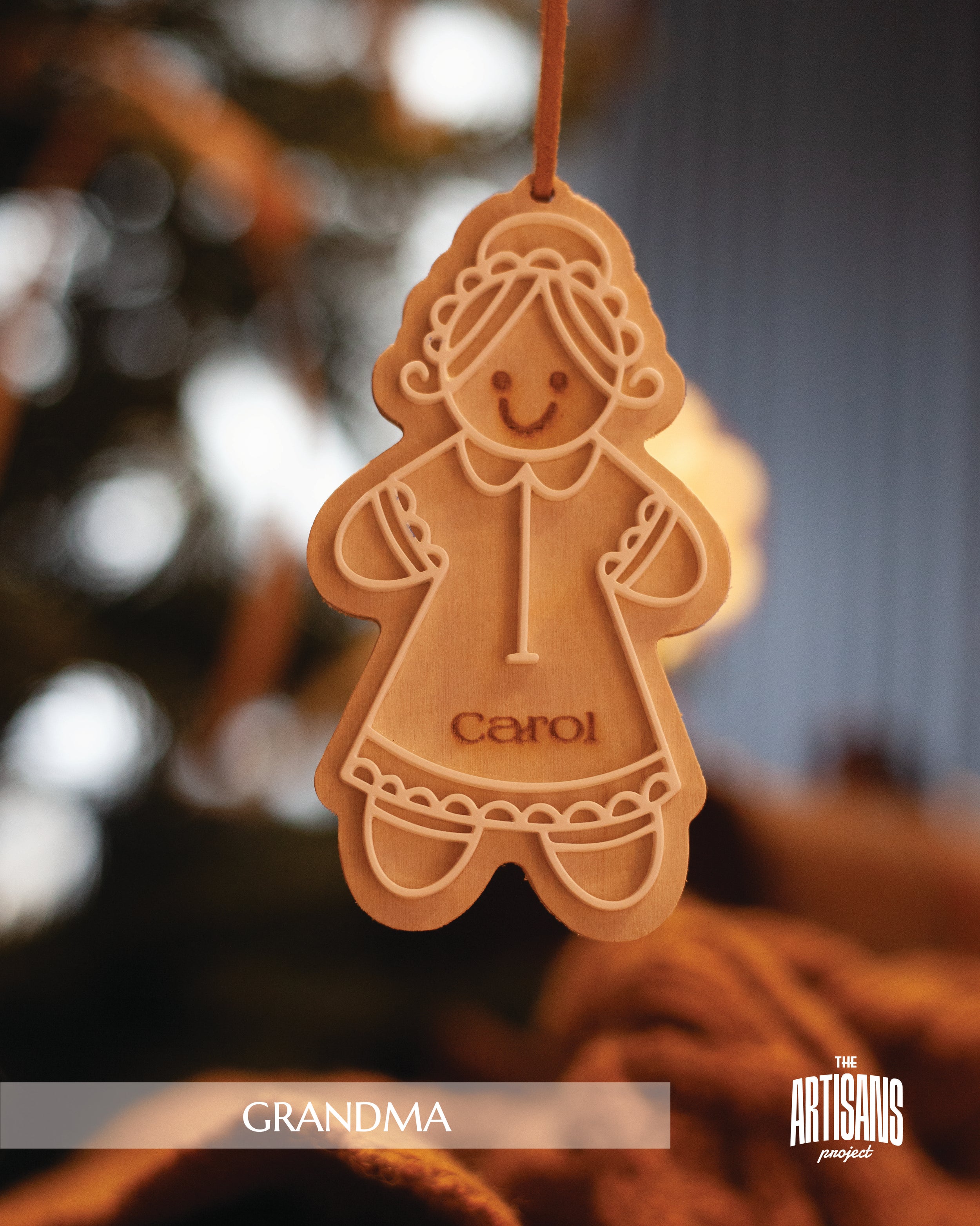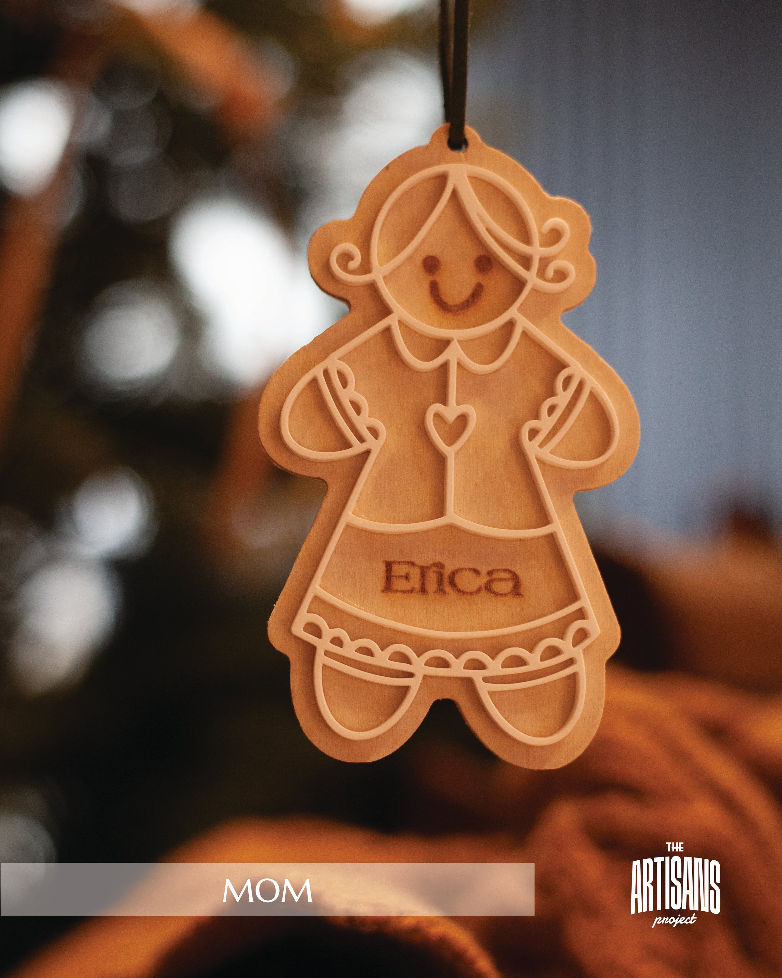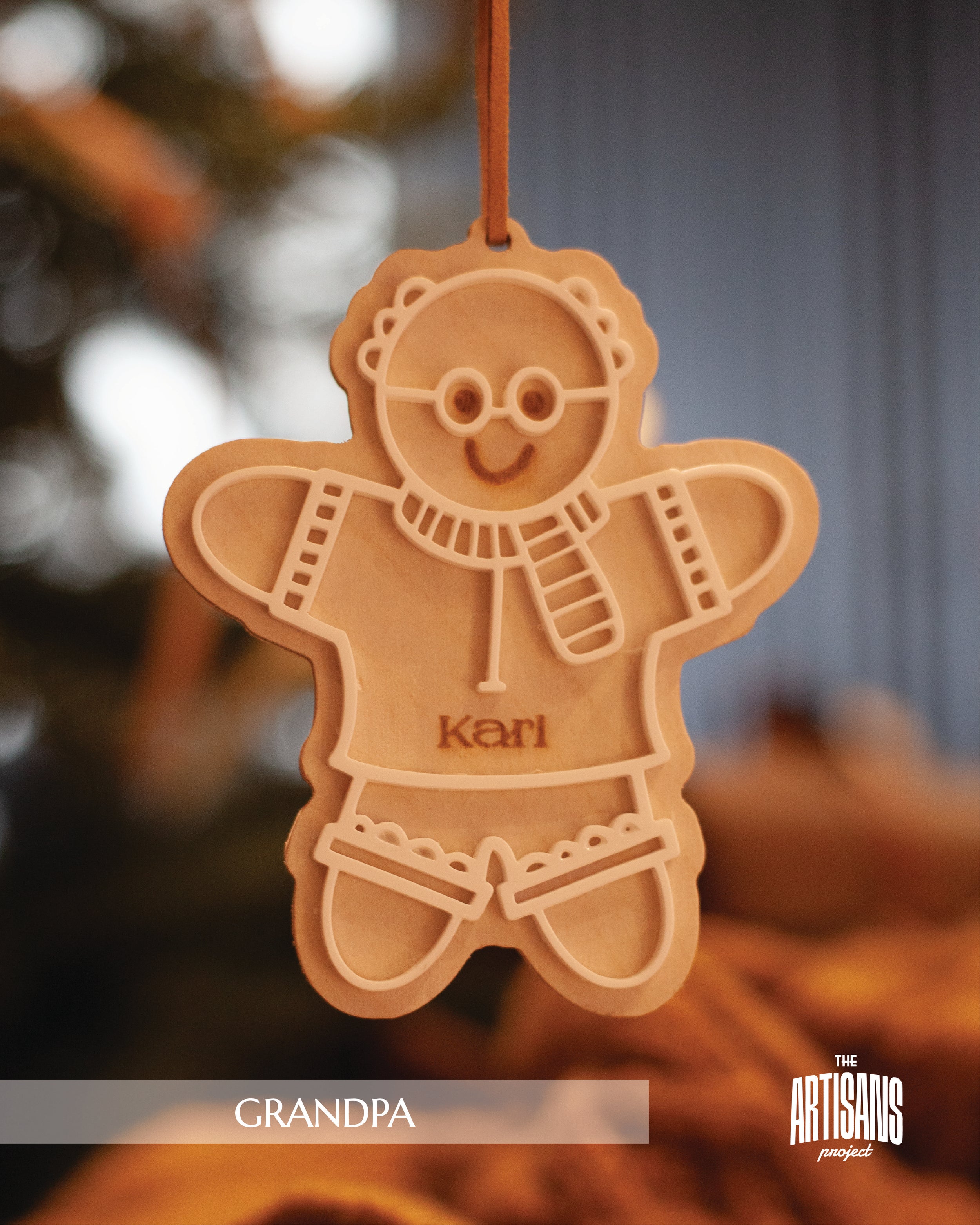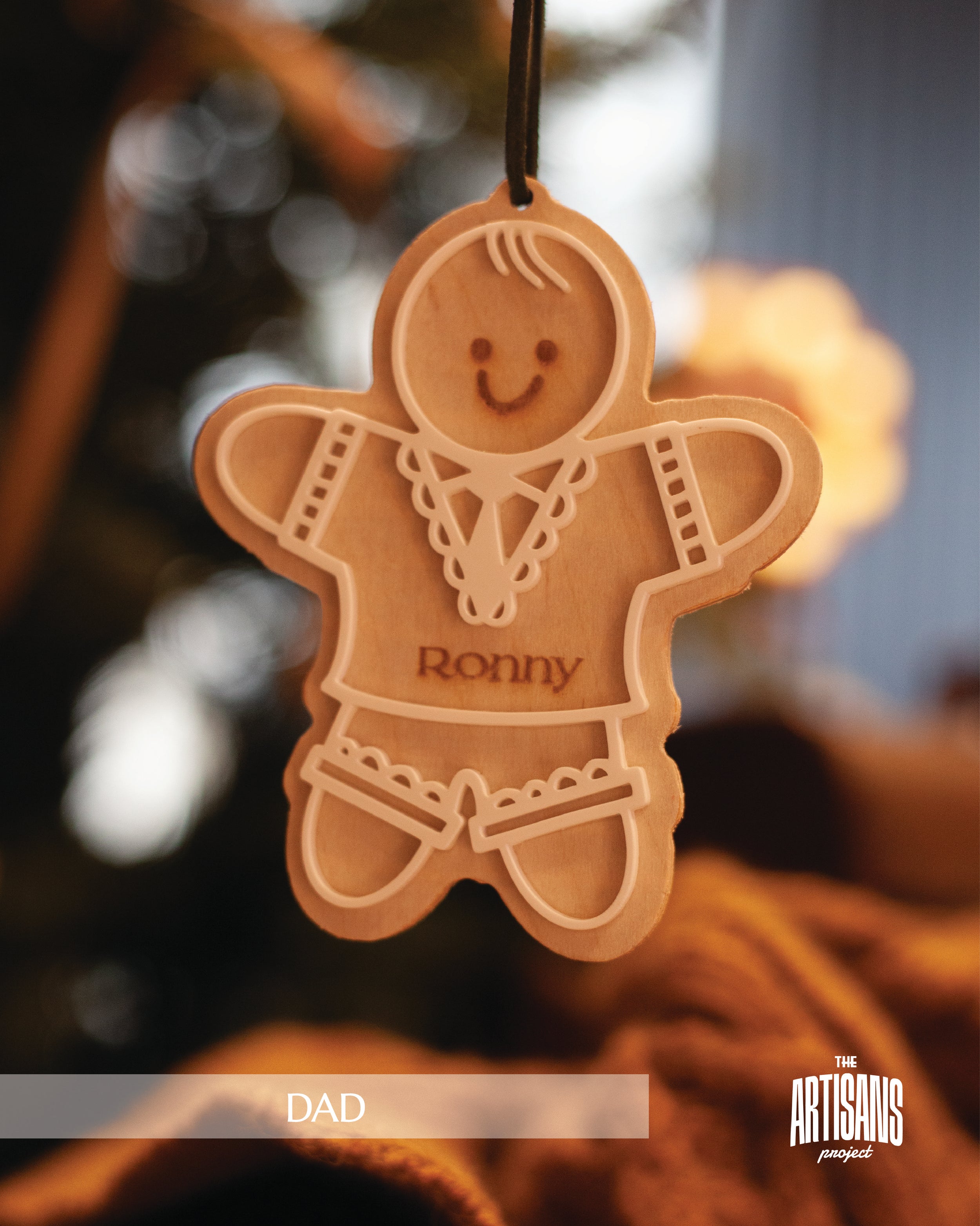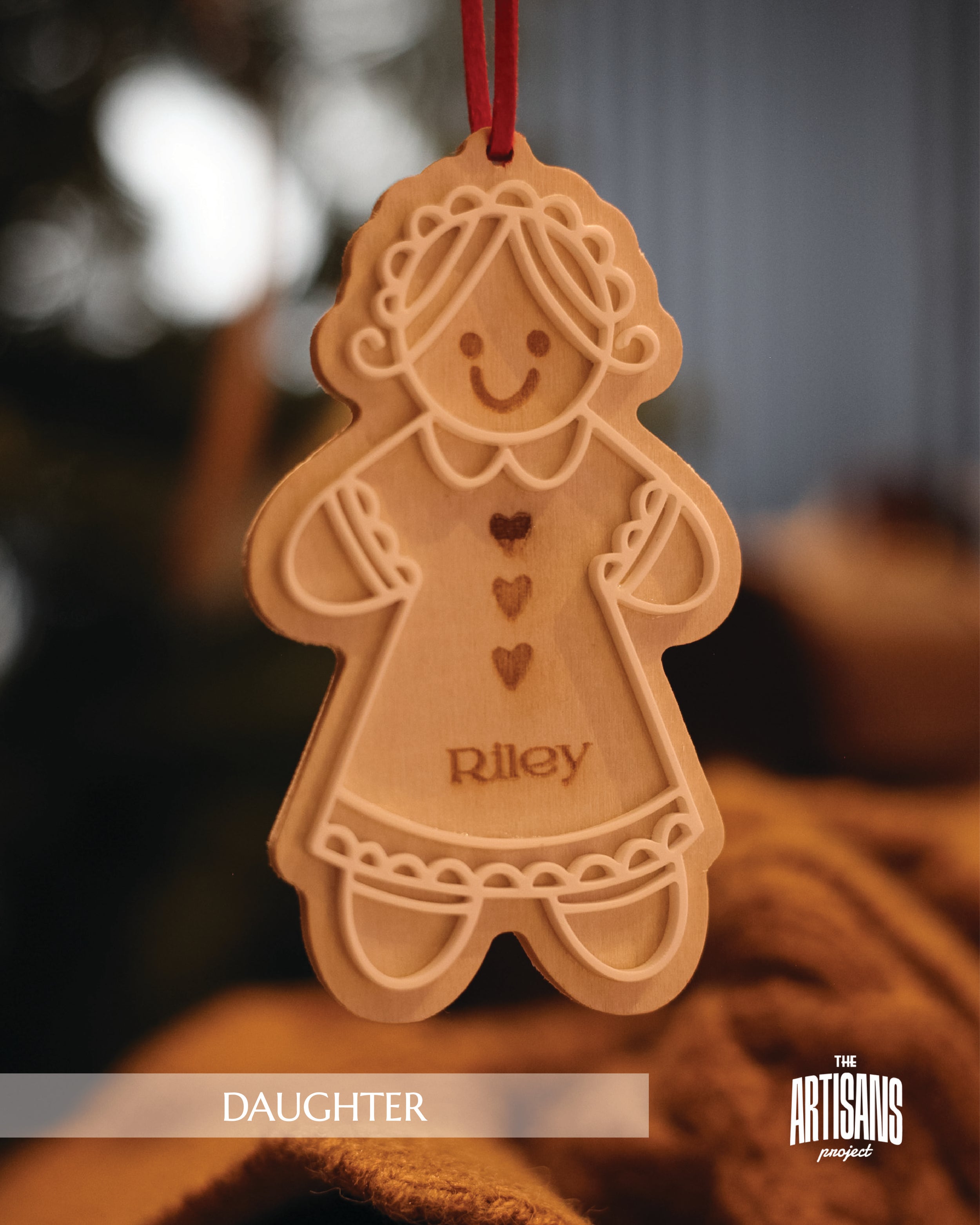 Celebrate the holiday season with these charming handcrafted gingerbread man family ornaments, each personalized with a name to make them uniquely yours. Each gingerbread figure represents a family member, bringing a playful and cozy feel to your Christmas decor.