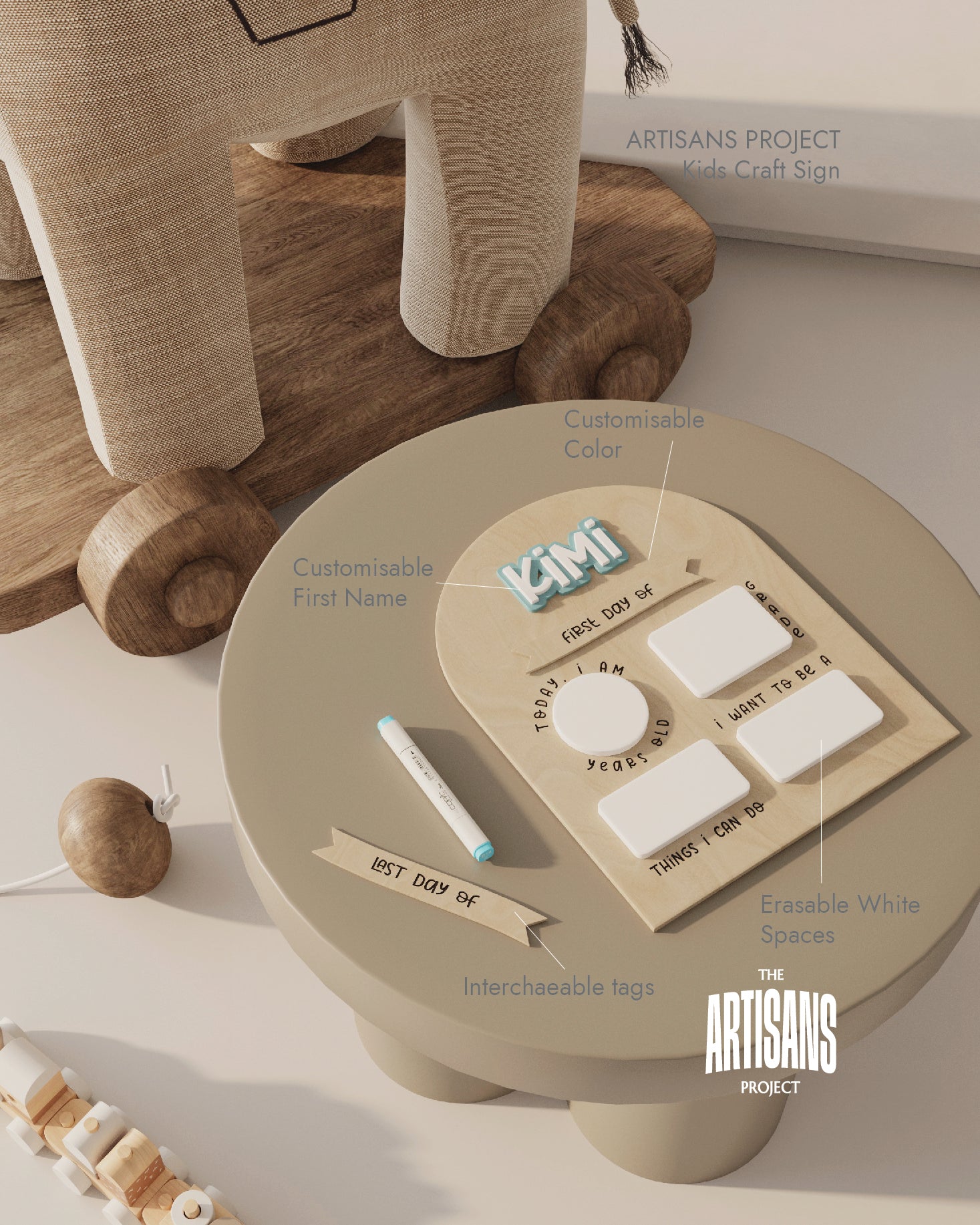 The smooth, natural finish of the birch wood pairs beautifully with the colorful acrylic accents, creating a bright and playful sign. Simply write in the details with a dry-erase marker to record each milestone, then wipe it clean and reuse it for the next “first day.”