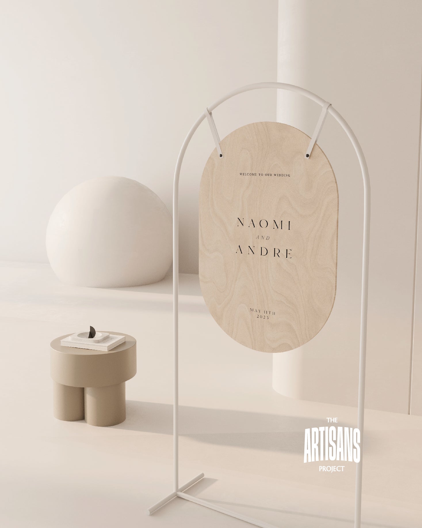 The series uses a beautiful wood base, to create a gentle yet timeless look, while your names are highlighted in a contrasting color to create a stunning focal point. The harmony of materials, delicate yet enduring - beautifully represents the union it celebrates.
